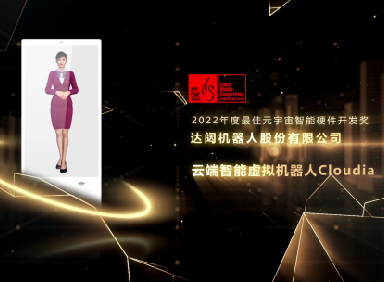 達闥雲端智能數字人Cloudia榮獲天鵞獎“2022年度最佳元宇宙智能硬件開發獎”